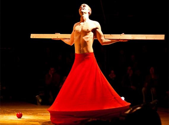 Sur scène, un manège comme un souvenir d’enfant, surélevé sur un plateau de bois. Un public en arène, scindé par deux podiums qui s’avancent de part et d’autre. C’est un music-hall de poche, une opérette rêvée, une histoire de cirque, de manipulation et détournement d’objets, de voltige « aérée »… un cabaret éclaté !