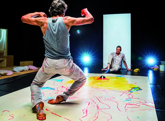 Entre le jeu subtil de la danse, de la musique et de la peinture, ils inventent le langage des commencements. Celui, poétique, grave et joyeux de leur rencontre. Enchantés.