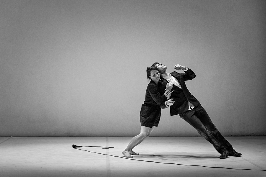Là est un geste brut et nu qui circule entre corps et voix, entre rythmes et portés, entre chute et élan. Rien ne s’y fixe, rien ne s’y installe, tout s’y laisse dévaler.