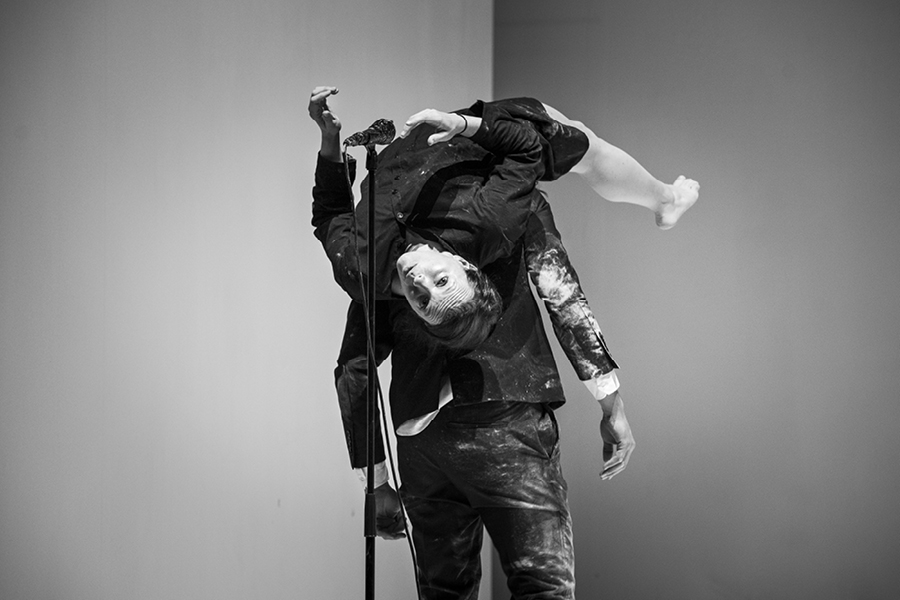 Le duo Camille Decourtye et Blaï Mateu Trias ont sorti de leur ménagerie Gus, l’oiseau noir et blanc, l’oiseau espiègle qui devient le maître de cérémonie. Il est aussi l’être qui fait le lien entre deux mondes parallèles, celui des peurs et des croyances et celui de la réalité dans laquelle s’observent l’homme et l’animal.