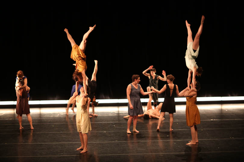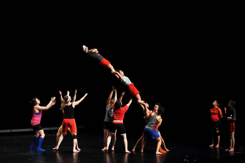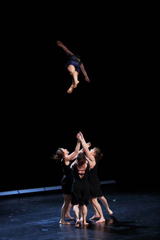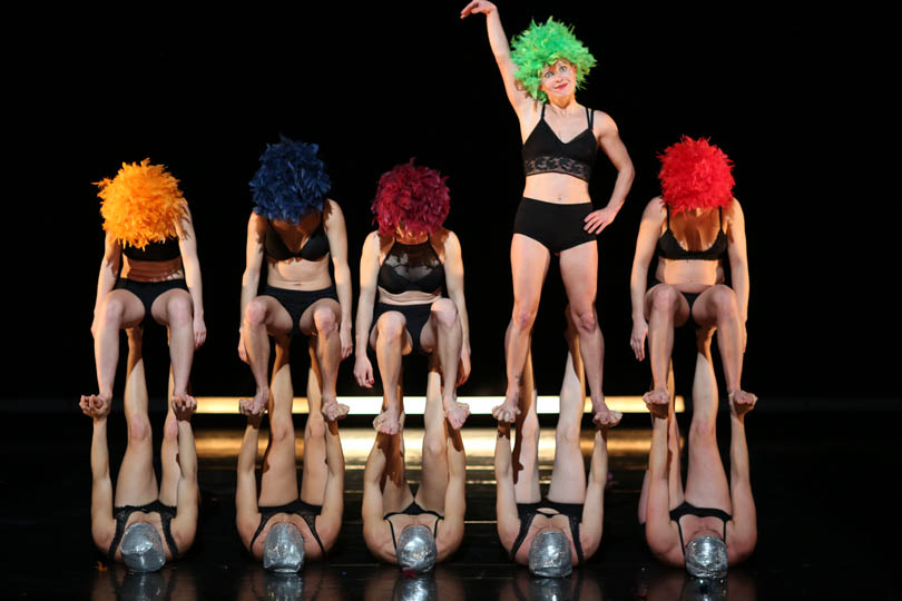 Tour à tour voltigeuses, danseuses, porteuses, musiciennes, acrobates, clowns…, elles sont conscientes d’être : des femmes, une masse, un ensemble aux possibilités infinies, différentes, convaincues, douces, masculines, des mamans, beaucoup, des pandas, incapables, fortes, lyriques, des signes astrologiques, hormono-réglées, des objets de désir, une équipe de rugby, des beautés, absurdes, des innommées, des supers héroïnes, des provocatrices, des idéalistes, vraies, illuminées, une avancée à l’unisson, une nomenclature, et plus…