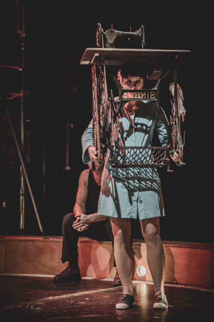 Inspirée de faits réels, cette fiction circassienne, où se mêlent corde aérienne, flamenco, acrobaties, fouet…, est mise en musique par le groupe Les Elles. Chants, orgue liturgique, violoncelle et machines à coudre s’accordent et forment un véritable opéra Usine.