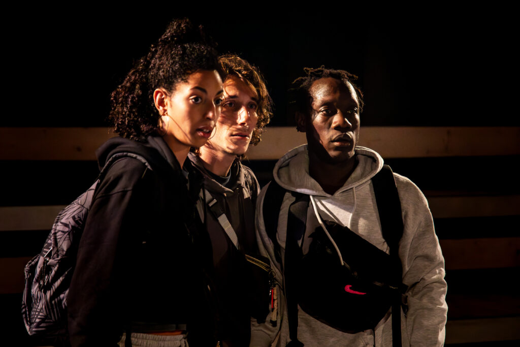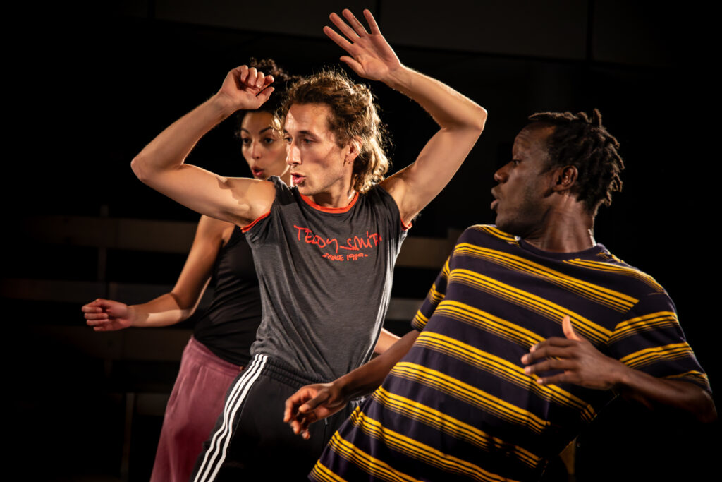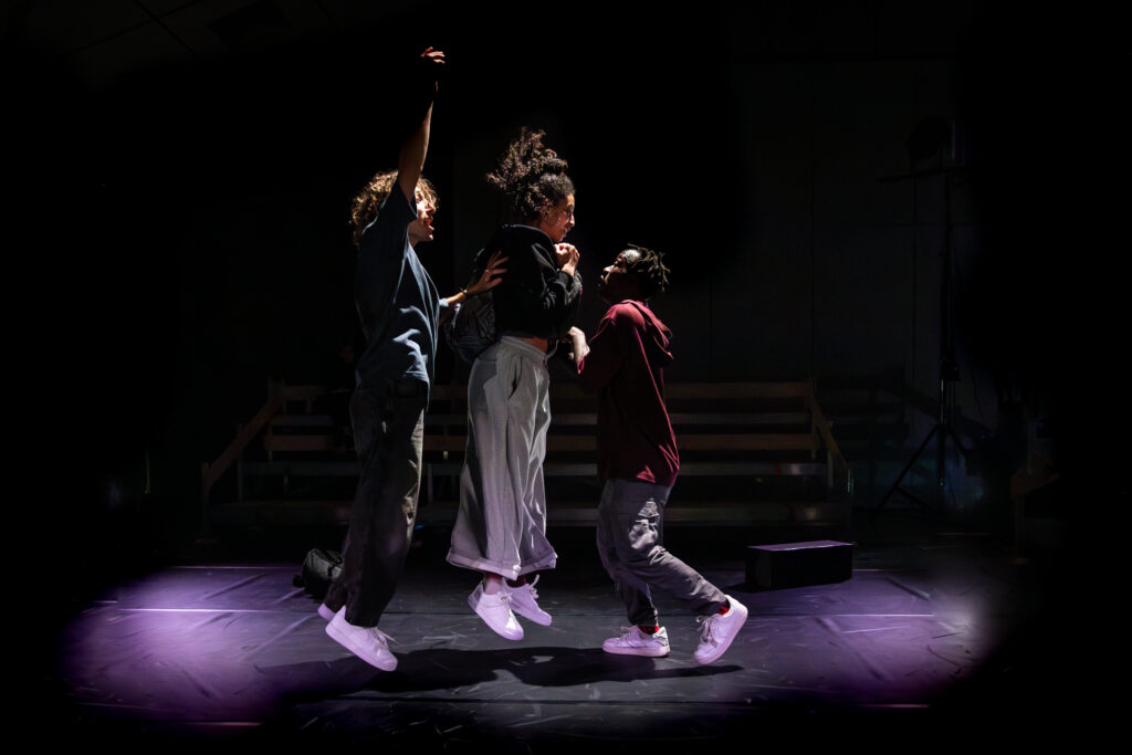 Après s’être intéressée aux « mOts premiers » des tout petits – spectacle présenté dans la saison 21-22 – Laurance Henry, metteuse en scène, réunit 3 jeunes adultes empreints encore de l’adolescence. Ensemble, ils cherchent, tentent de dépasser la difficulté de nommer, de verbaliser. Ils résistent, tâtonnent, se taisent. C’est en empruntant d’autres voix-voies : la course, la danse, la lutte, le chant… qu’ils façonnent leur propre langage et se racontent.