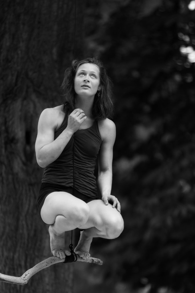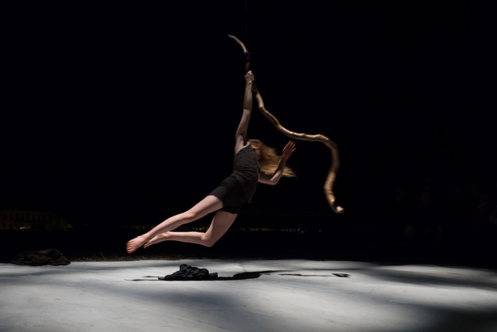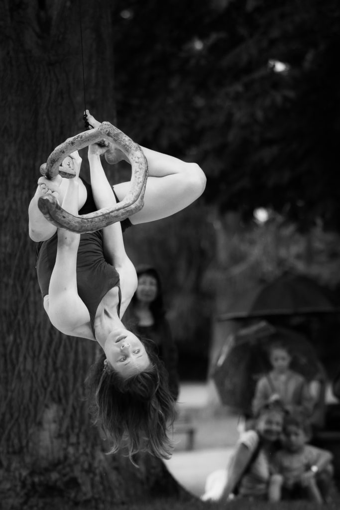Entre danse et cirque, Hêtre est un corps à corps harmonieux et hypnotique entre un arbre qui devient un agrès hors du commun et une jeune femme en pleine métamorphose. Tour à tour accrochée, enroulée autour ou perchée sur une branche d’arbre à la verticale, l’acrobate évolue en dansant dans les airs, renvoyant la merveilleuse sensation de liberté inhérente aux disciplines aériennes. Le son de l’accordéon crée comme un bulle musicale autour d’elle.