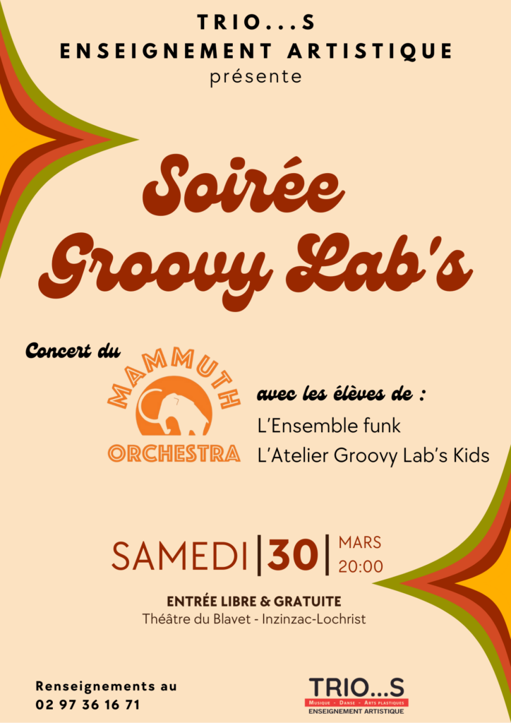 Le Groovy lab’s Kids est un ensemble éphémère composé d’élèves ayant au minimum 5 ans d’études instrumentales en cours à l’école de musique de Trio…s. L’objectif a pour but d’apporter des outils autour de la création et de l’improvisation sur une esthétique musicale s’orientant vers le funk et l’afro beat.