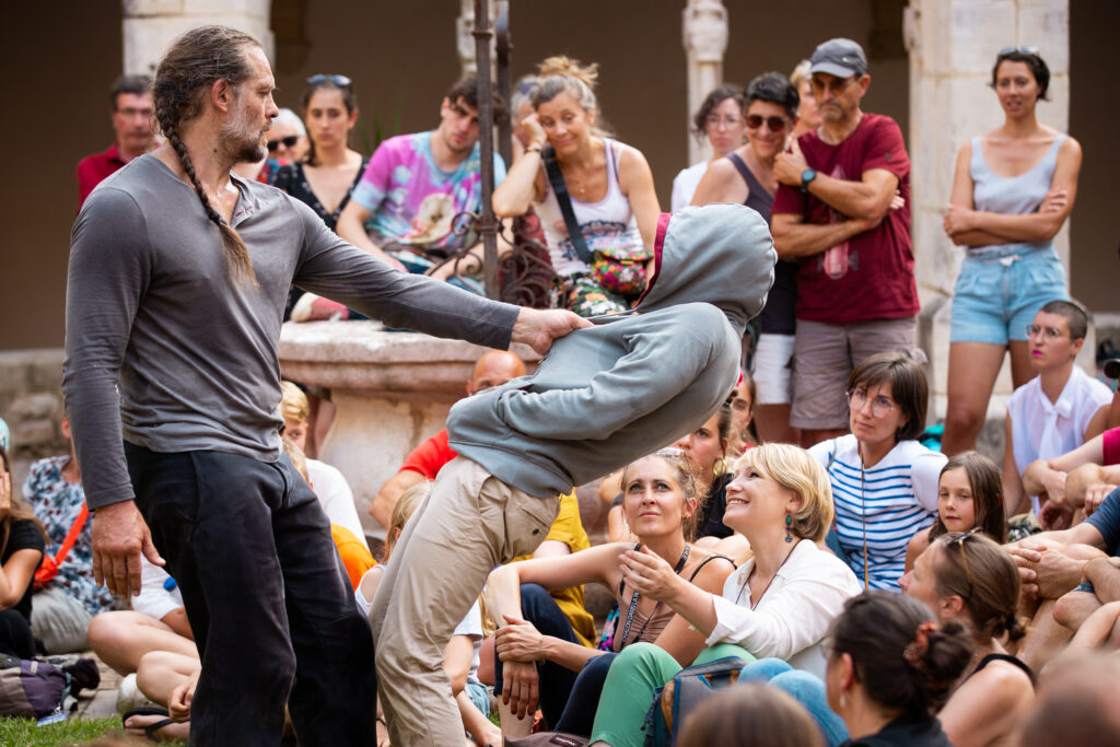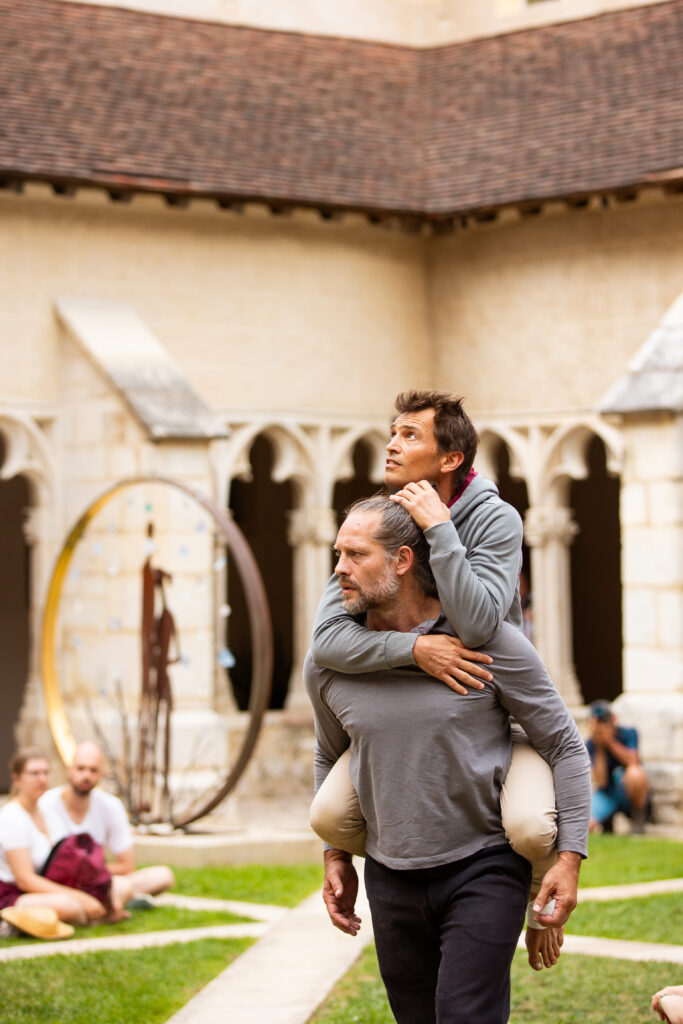 En plein air sous les remparts d’Hennebont, au plus près des artistes, une rencontre sensible, vertigineuse, dans la délicatesse de la complicité où la notion même de « porter » est considérée comme un acte fondateur de notre humanité.