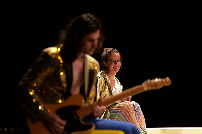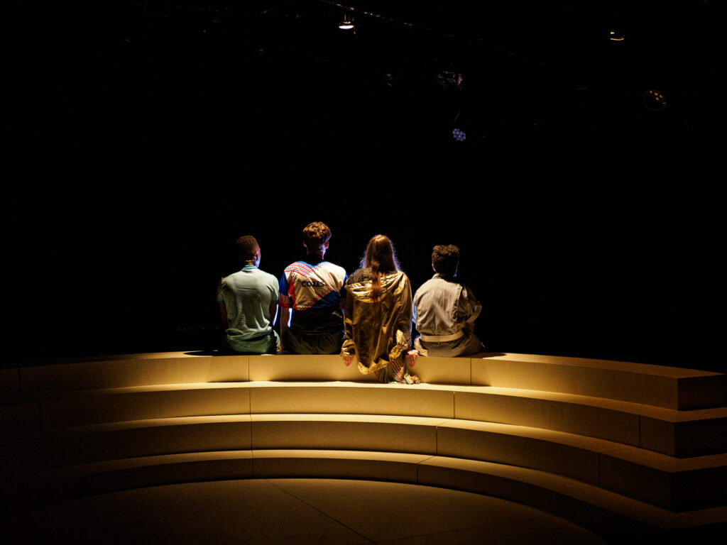Textes et mise en scène : Clea Petrolesi / Collaboration artistique : Catherine Le Hénan / Interprètes : Léa Clin et Félix Omgba, Marine Déchelette, Floriane Royon, Guillaume Schmitt-Bailer, Oussama Karfa, Noé Dollé / Musicien et composition : Noé Dollé, Georges Hubert / Collaboratrice artistique et chorégraphe : Lilou Magali Robert / Création Lumière et Régie Générale : Carla Silva / Scénographie : Margot Clavières / Décors : Yohann Chemmoul Barthélémy / Costumes : Elisabeth Cerqueira / Participation : Noham Lopez, Aldric Letemplier, Félix Ombga, Côme Lemargue, Nils Pingeaut, Auguste Sow-Konan, Jean-Daniel Dupin Production / Compagnie Amonine / Diffusion : Camille Bard / Coproduction : Théâtre Paris-Villette, le Théâtre Antoine Vitez – scène d’Ivry dans le cadre d’une résidence de création, le Théâtre du Cristal, Festival Imago, le Théâtre Jean Vilar de Vitry-sur Seine, résidence de création au Grand Parquet, maison d’artistes du Théâtre Paris-Villette / Avec le soutien de la DRAC Ile-de-France / « La Vie devant soi », réseau coopératif francilien de production de spectacle vivant et de réflexion autour des publics adolescents : Théâtre Dunois, PIVO – Théâtre en territoire, Scène conventionnée d’intérêt national, « Théâtres de Châtillon et de Clamart », La ferme de Bel Ebat – Théâtre de Guyancourt, L’entre deux – Scène de Lésigny, Théâtre André Malraux de Chevilly-Larue, Théâtre Jean-Houdremont – centre culturel La Courneuve, le Théâtre 13 / Avec l’aide à la résidence de création du Théâtre de l’Usine / Avec le soutien du Centre Égalité des Chances de l’ESSEC Business School, de la MAIF, de la Fondation ECART Pomaret, et de la SPEDIDAM / Création soutenue par le département du Val-de-Marne et la Région Ile-de-France.