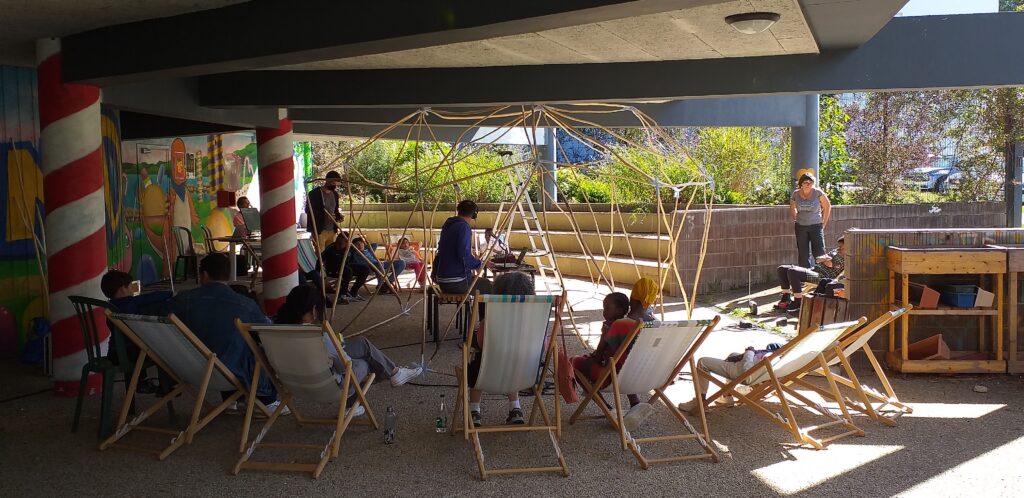 Après leur pendaison de crémaillère à Kerihouais en septembre dernier, revoilà les Frères Pablof… Ils ont planté leur tipi de bivouac sur le site de la Poterie pour continuer leur collecte de récits sur notre rapport intime au monde sauvage et vous invitent à une sieste sonore, dans l’herbe tendre, au son de transistors branchés sur Radio Pablof…