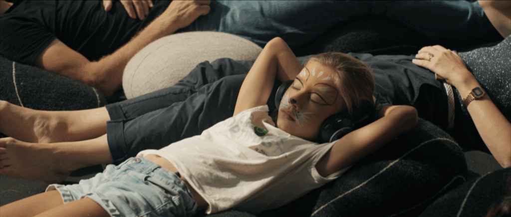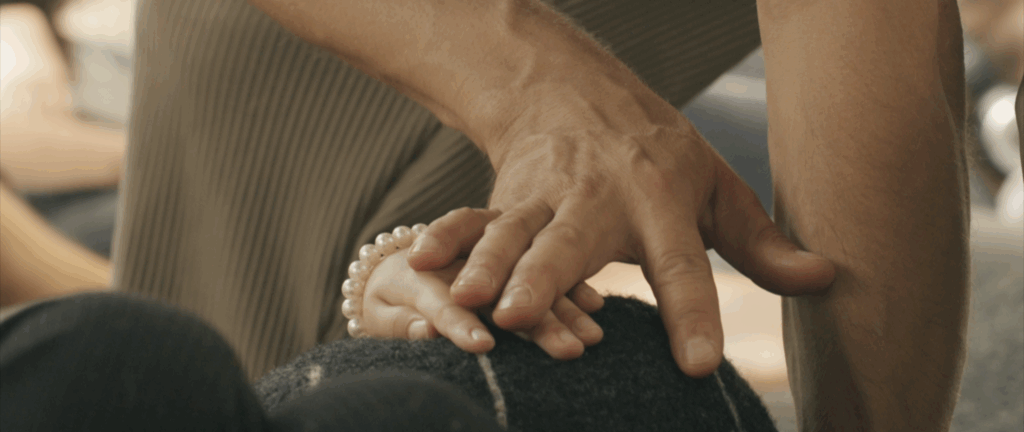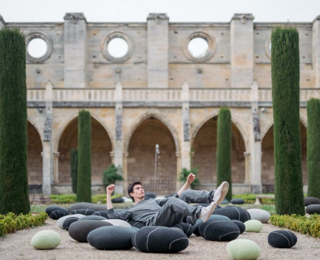 Allongé·e·s sur des coussins galets, casque sur les oreilles, le public écoute des récits portant sur le corps et les sensations. Autour, des danseurs inspirés par la pizzica, danse italienne, évoluent en douceur. Également masseurs professionnels, ils prodiguent des gestes apaisants, intégrant le toucher à l’expérience sensorielle et artistique. Un véritable voyage intérieur réparateur.