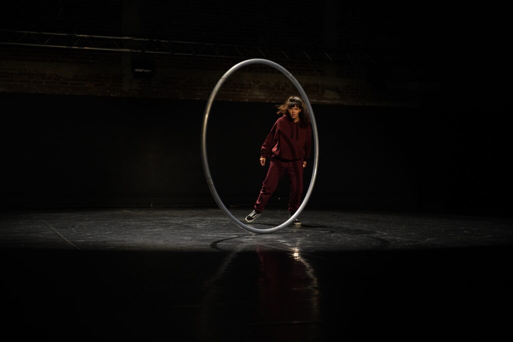 Pour porter ce récit de vie, la compagnie HKC a décidé de faire appel à une circassienne, Mélodie Morin et sa roue Cyr qui virevolte tantôt appui, tantôt prise. La puissance évocatrice de l’agrès et du texte interroge la place du corps de la jeune fille dans la société. Trop montré, trop caché, trop gros, trop masculin, trop provocateur… Ce monologue pour circassienne est une histoire pleine d’espoir : celle d’une nouvelle génération qui détient les clés d’un changement profond sur l’amour, le genre et la sexualité.