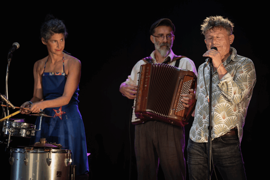 Pendant que mijotait la soupe, Yannick Jaulin, conteur et chanteur, a concocté des comptines qu’il partage sur scène, entouré de deux musiciens-chanteurs. Il revisite ses racines, mêle ses comptines à celles du père Richard, tissant un pont entre son cœur d’enfant et celui des jeunes d’aujourd’hui, mêlant son français d’adulte à sa langue d’enfance. Une soupe joyeuse et malicieuse à savourer en famille.