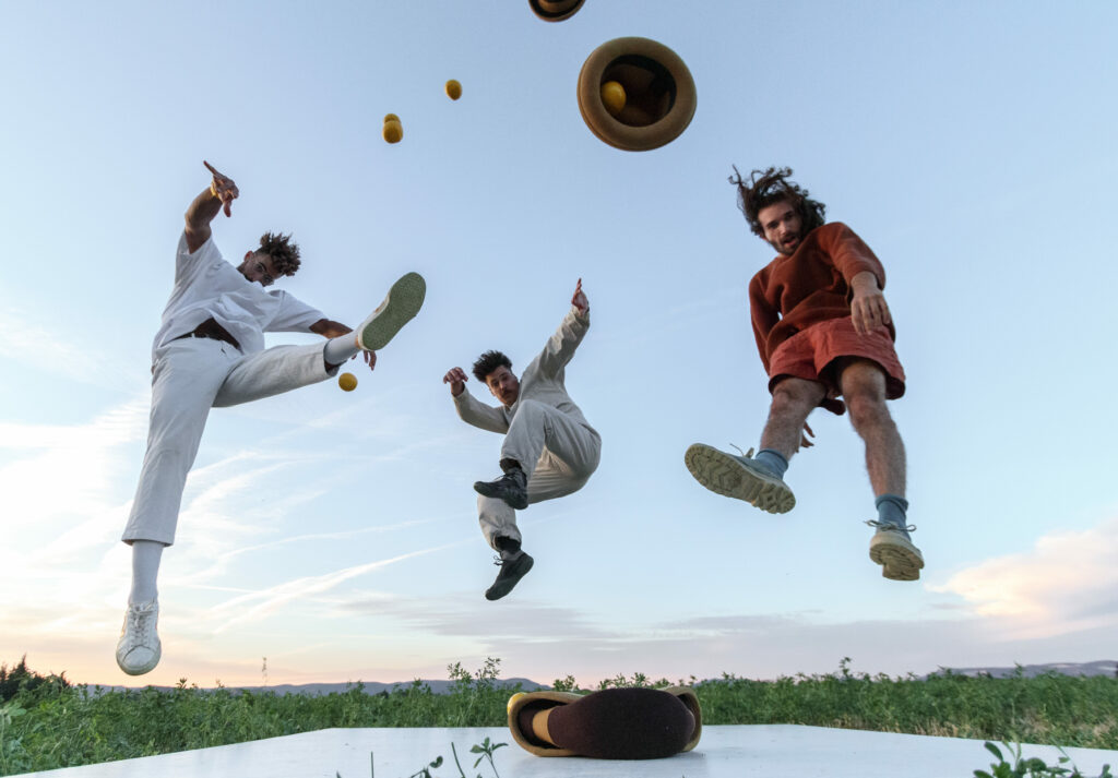 Trois artistes, trois personnalités, trois disciplines, réunis autour d’un imaginaire commun et très hétéroclite. Cette diversité est à l’image de ce qu’ils sont : un jongleur formé à la danse hip-hop, un dessinateur architecte portugais devenu jongleur de haut niveau, et un clown italien manipulateur de chapeaux et spécialiste de la house dance !