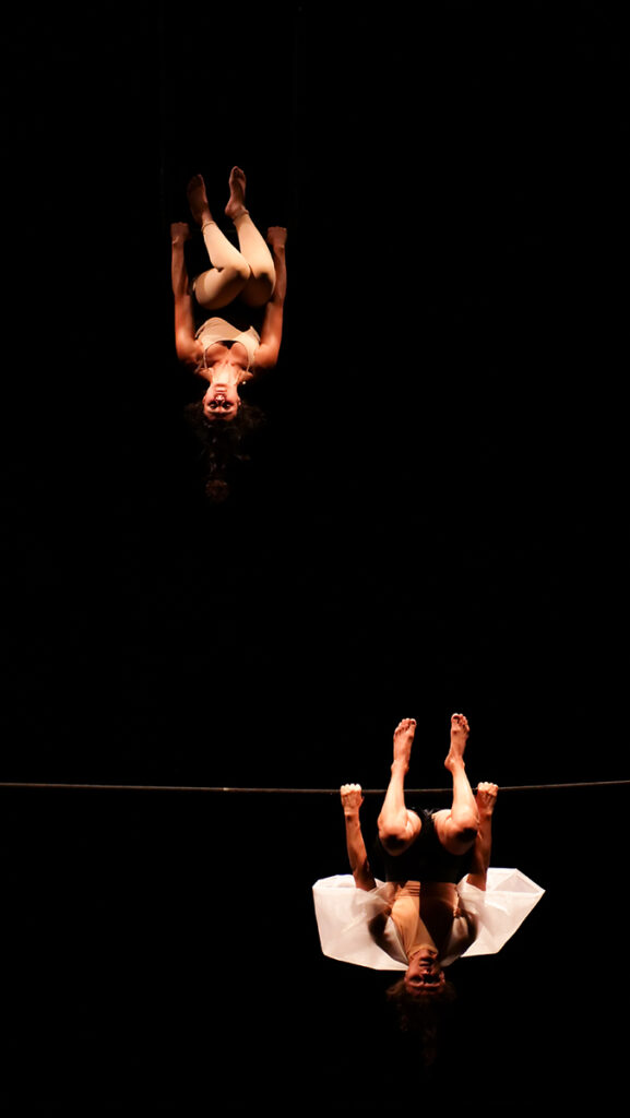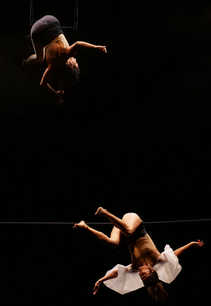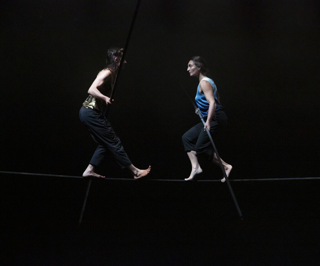 Les cordes des agrès et les haubans qui les relient dessinent un espace de lignes et d’écriture, où vibrent et s’expriment les circassiennes. Leur langage rêvé – fil, funambule, trapèze ballant – dit l’envie de lutter contre l’immobilisme. C’est une promesse de mouvement et d’émotion que formule Marion Collé dans ce manifeste poétique et politique attentif à la singularité des corps. Les sensibilités de chacune y entrent en résonance et en solidarité.